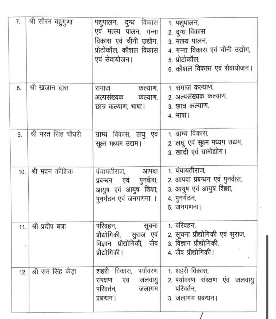 हाल ही में मुख्यमंत्री ने कैबिनेट का विस्तार करते हुए विधायक खजान दास, मदन कौशिक, भरत सिंह चौधरी, प्रदीप बत्रा और राम सिंह कैड़ा को मंत्री पद की जिम्मेदारी सौंपी है। दरअसल, मंत्रिमंडल में पाँच पद लंबे समय से रिक्त चल रहे थे, जिनमें तीन पद पहले से खाली थे, एक पद पूर्व मंत्री चंदन राम दास के निधन के बाद रिक्त हुआ था, जबकि एक पद प्रेम चंद अग्रवाल के इस्तीफे के कारण खाली हुआ। इन परिस्थितियों में संबंधित विभागों का दायित्व भी मुख्यमंत्री के पास ही था।