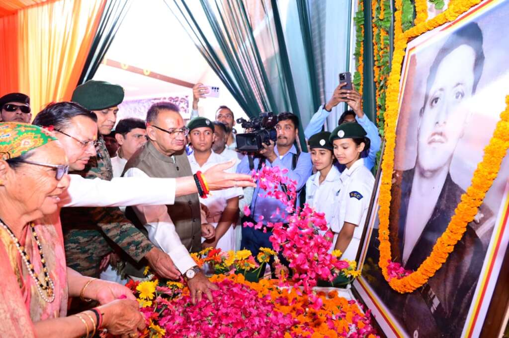 मुख्यमंत्री ने कार्यक्रम के दौरान अपने पिता स्व. सूबेदार शेर सिंह धामी के चित्र पर श्रद्धा सुमन अर्पित किए तथा शहीदों के चित्रों पर पुष्प अर्पित कर उन्हें नमन किया। उन्होंने शहीदों के परिजनों एवं वीर नारियों को शॉल ओढ़ाकर सम्मानित भी किया। इस अवसर पर उन्होंने 60 वीर नारियों एवं 80 वीर योद्धाओं को सम्मानित किया।