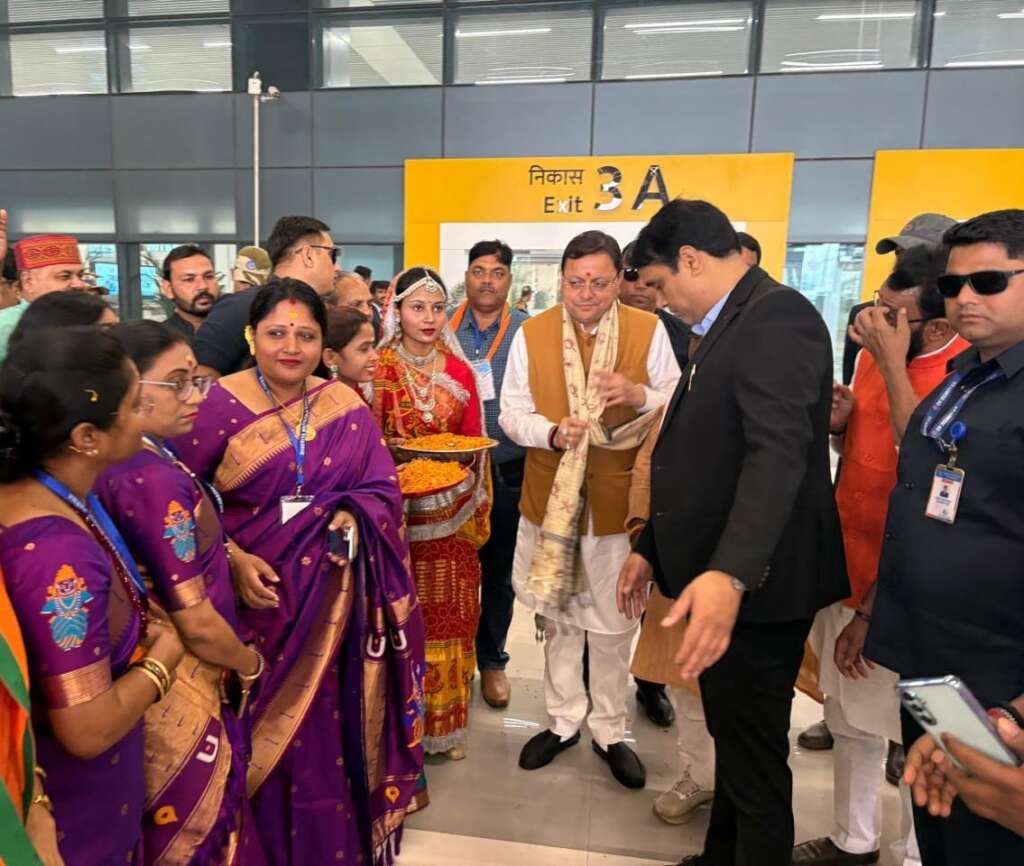 पटना एयरपोर्ट पर मुख्यमंत्री पुष्कर सिंह धामी का भव्य स्वागत
